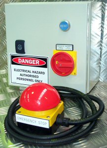 Inclusion of lockable electrical isolator fitted to the Emergency Stop Control Box assists with machine tag out or maintenance work.